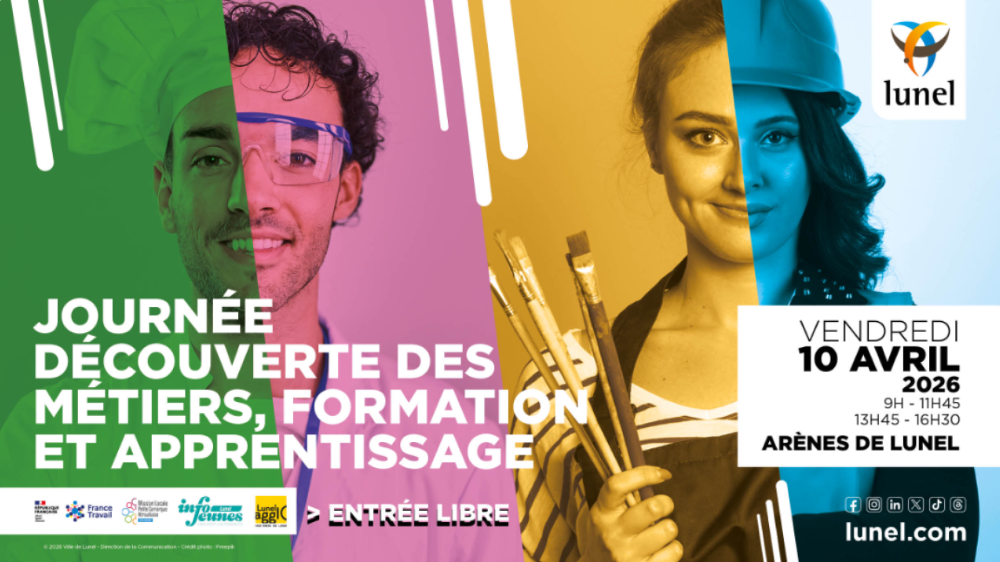 La Ville de Lunel organise, en partenariat avec plusieurs acteurs locaux, une Journée Découverte des Métiers, Formation et Apprentissage le vendredi 10 avril 2026, aux Arènes de Lunel. Cet événement, ouvert à tous en entrée libre, se déroulera en deux sessions : de 9h à 11h45 et de 13h45 à 16h30.